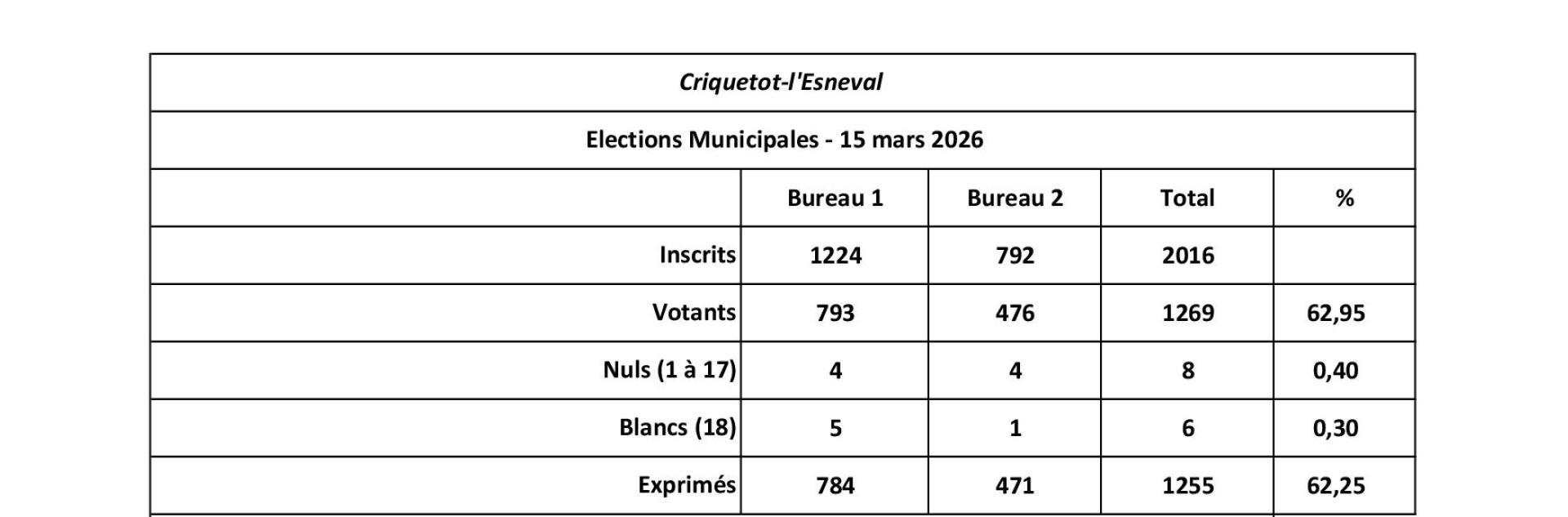 Résultats des élections