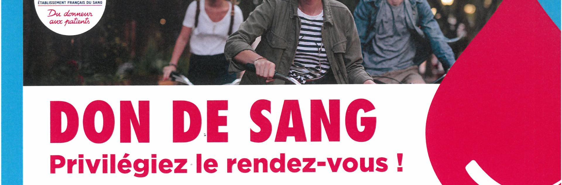 Du 20 Jan Don du sang Timetable : 15h00 - 19h00 Adresse : Salle des Fêtes Ajouter au calendrier Sur la carto Salle des Fêtes Fermer Precedent Retour à la liste Suivant