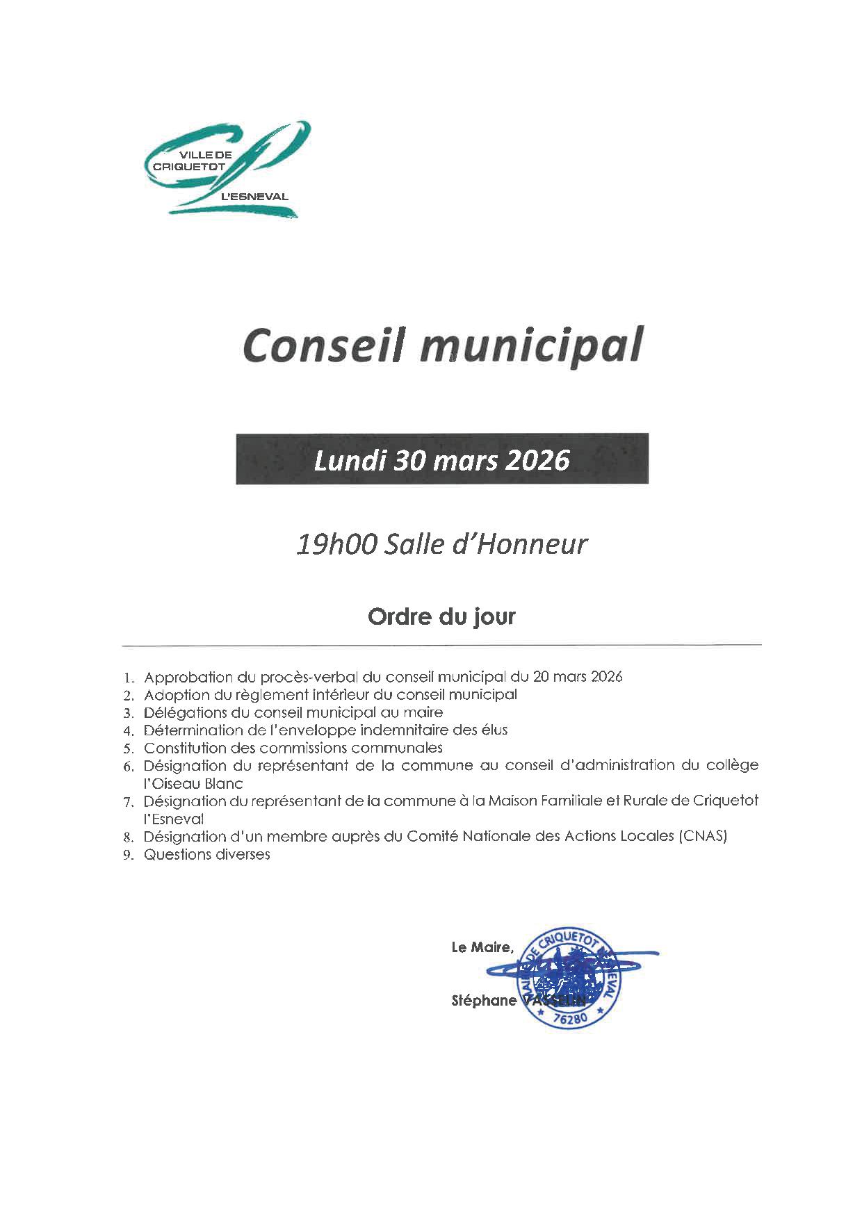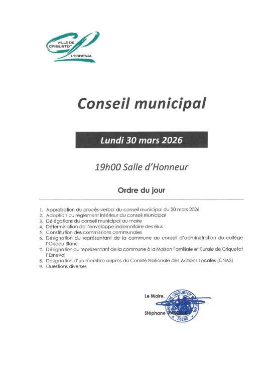 Du 30 Mars Réunion du Conseil Municipal Timetable : 19h00 Ajouter au calendrier Precedent Retour à la liste Suivant