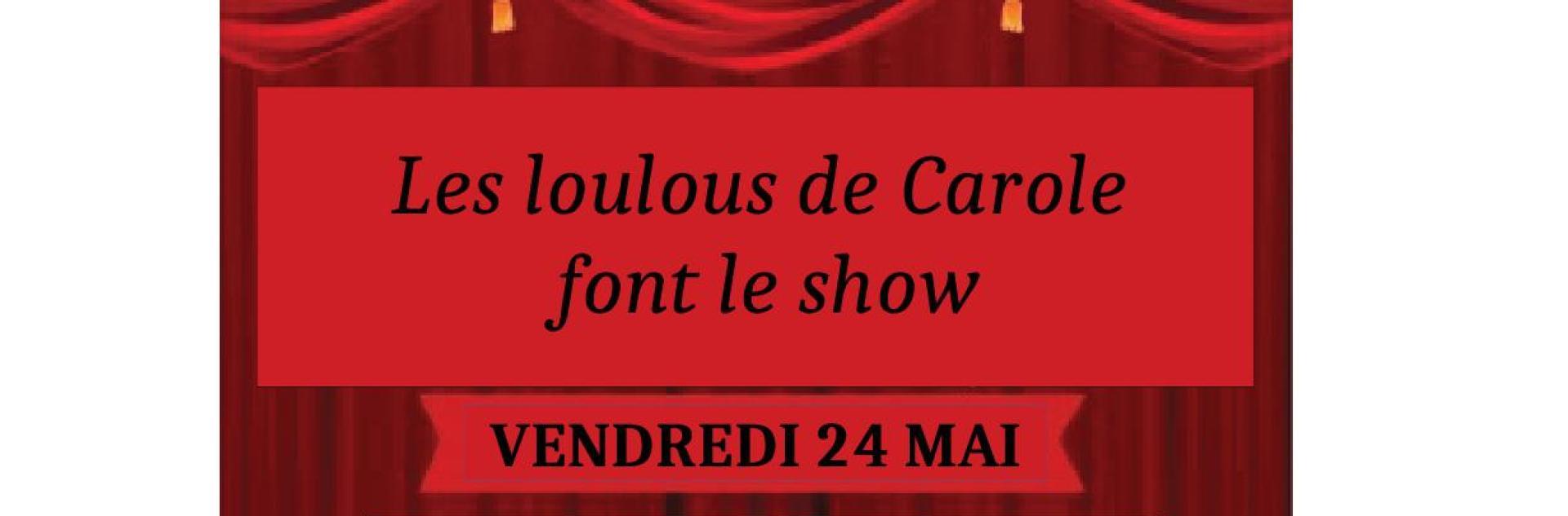 Du 24 Mai Théâtre : Les loulous de Carole font le show Timetable : 20h30 Adresse : Salle des Fêtes Ajouter au calendrier Sur la carto Salle des Fêtes Fermer Precedent Retour à la liste Suivant