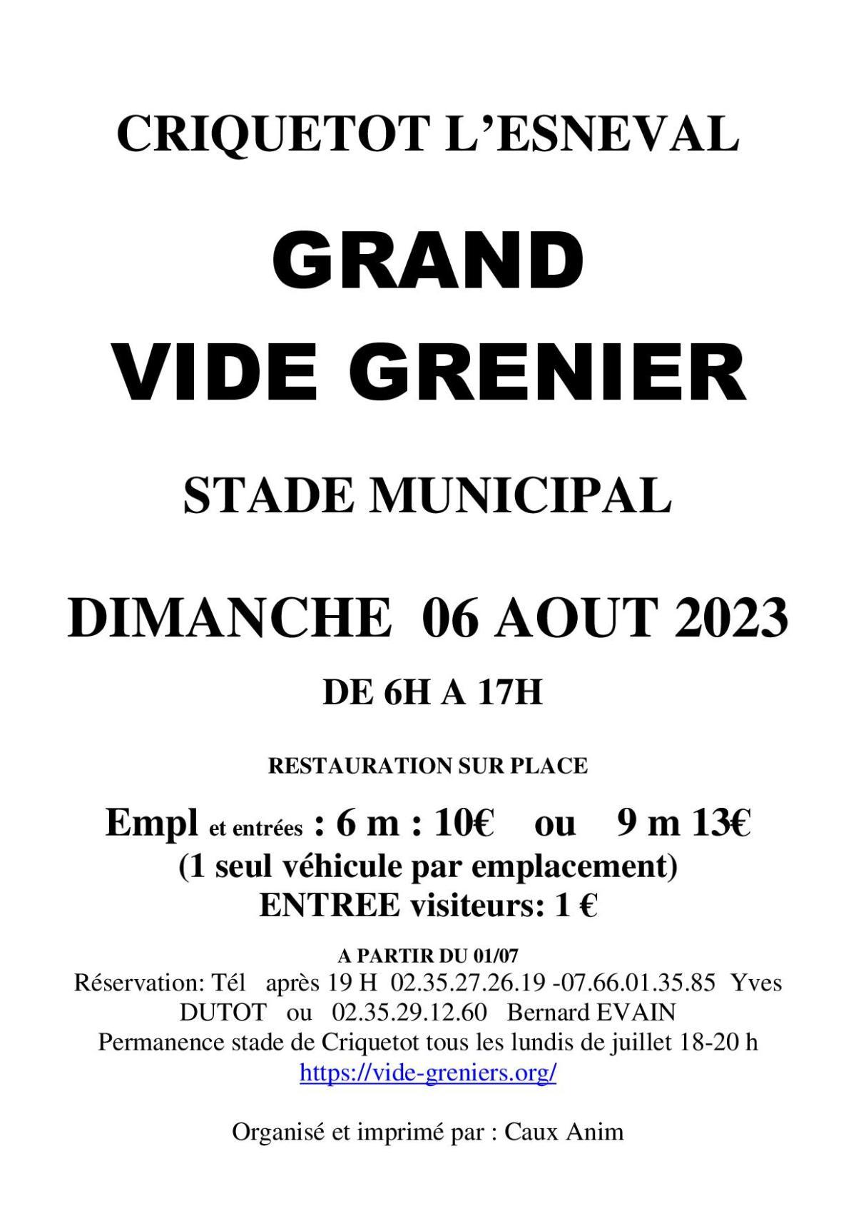 Du 06 Août Vide grenier Timetable : 06h00 - 17h00 Adresse : Stade municipale Ajouter au calendrier Sur la carto Stade municipale Fermer Precedent Retour à la liste Suivant